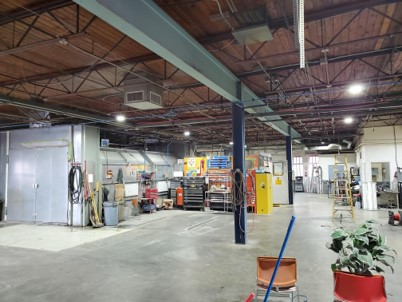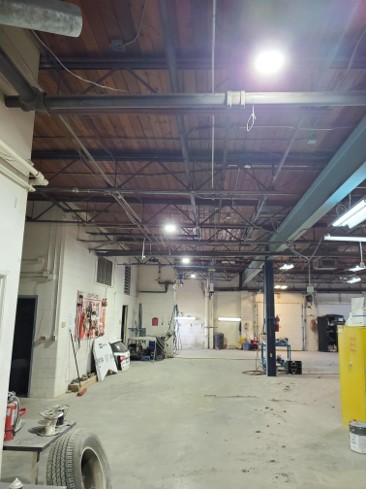 Complete light design and change. They now have a lot more light that are correctly placed in the right spot. With our new LED High Bays, Uber Autobody is saving lots on power.