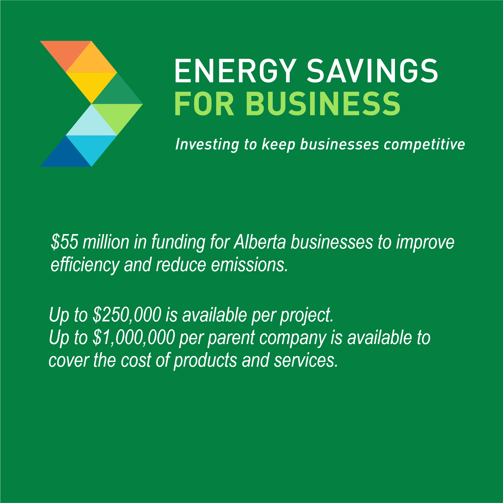 Alberta Energy Savings for Business help eligible Alberta businesses reduce emissions, decrease operating costs, grow their operations and become more competitive.